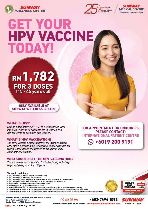 Book Your Appointment Today! Contact our International Patient Centre at +60 19-200 9191 or visit www.sunwaymedicalinternational.com to schedule your visit.