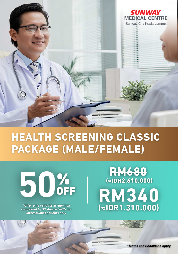 • For enquiries, please contact our International Patient Centre via WhatsApp at +(60)19-200 9191 or email us at smc.ipc@sunway.com.my.