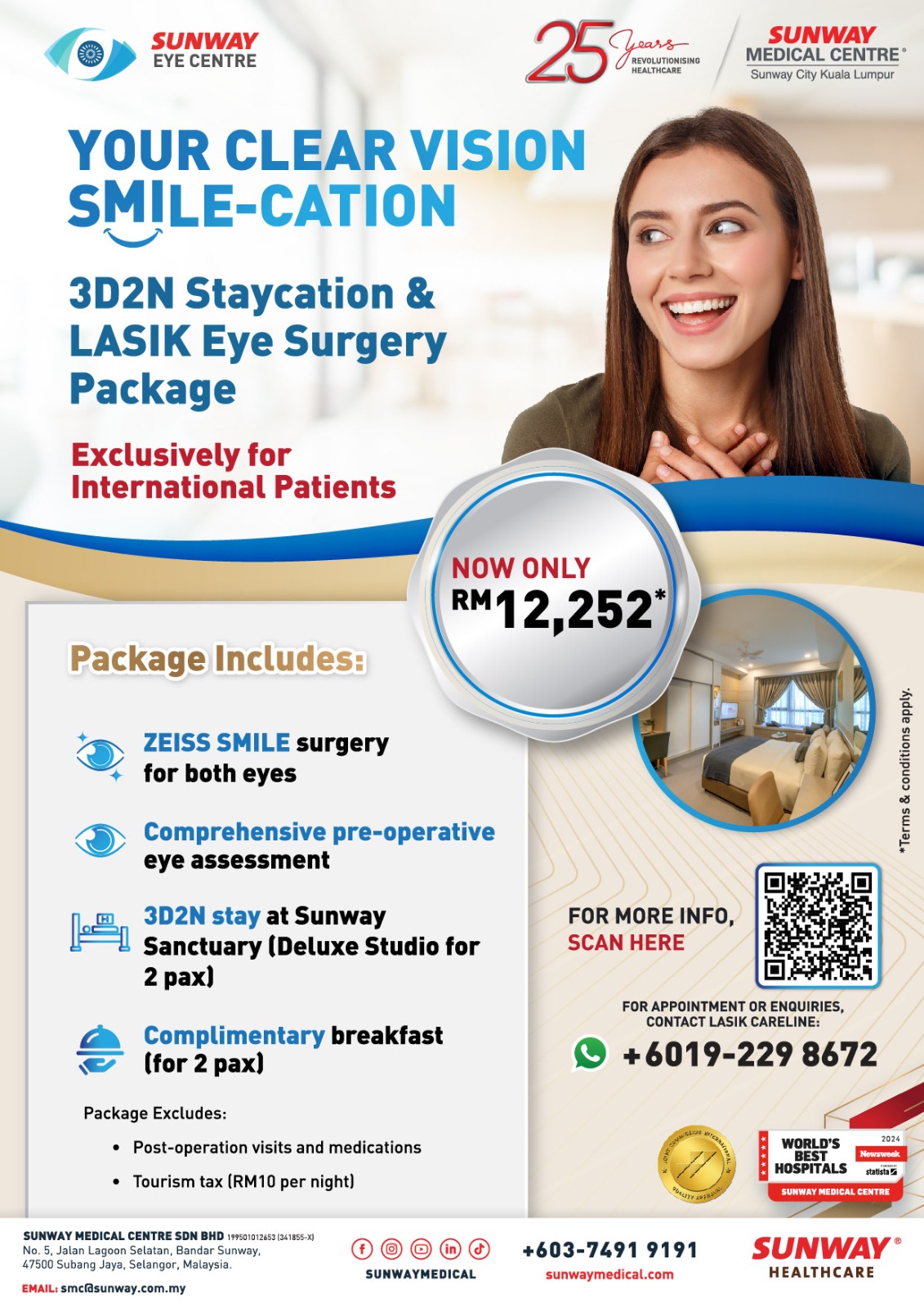 Apakah Anda merasa lelah dan jenuh dengan kacamata yang menghalangi Anda untuk menjalani hidup sepenuhnya? Kini saatnya merasakan kebebasan penglihatan dengan ZEISS SMILE hanya seharga RM12,252* untuk kedua mata! Ini kesempatan Anda untuk memanfaatkan penawaran eksklusif ini bagi pasien internasional.